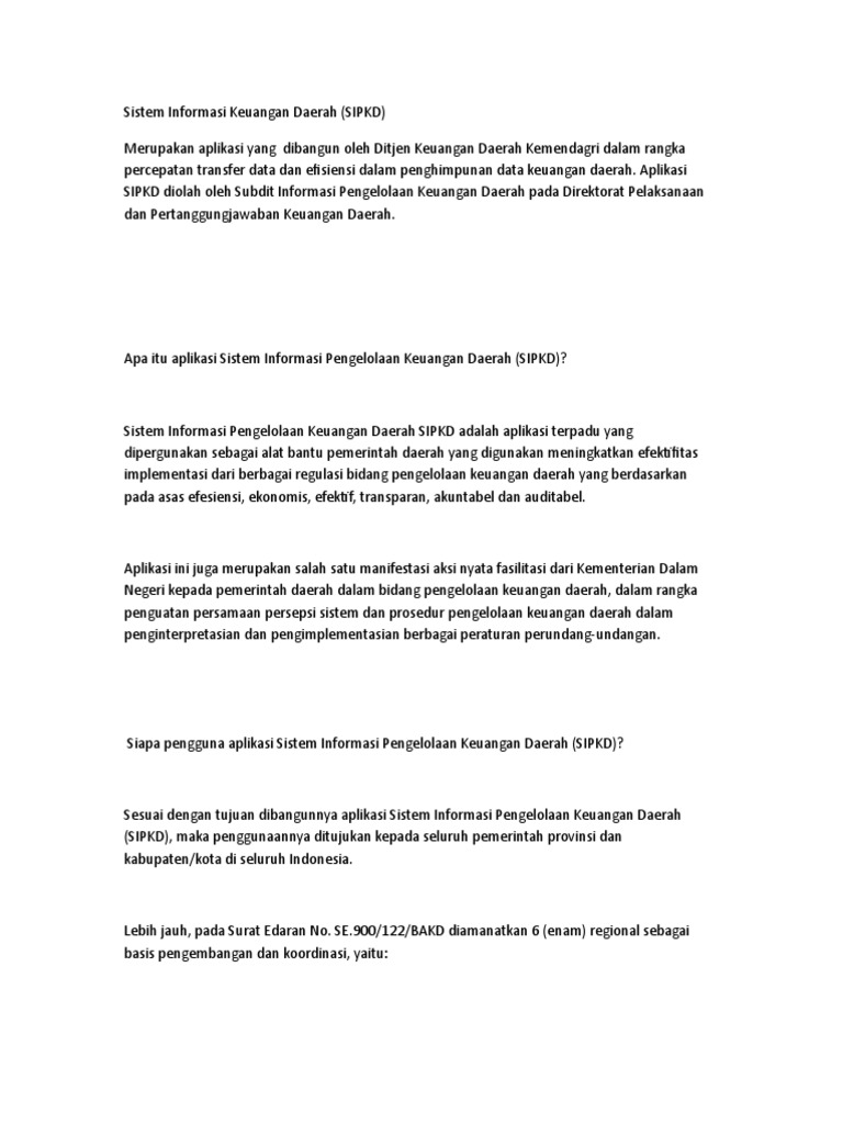 Penyampaian informasi keuangan daerah dilakukan secara berkala melalui dokumen tertulis dan media lainnya dengan batas waktupenyampaian ikd dimaksud: Sipkd yang dikembangkan dengan basis teknologi informasi, didesain sedemikian rupa agar bisa menjadi sarana unt. Wilayah i, yang meliputi aceh, sumatra utara, sumatra barat, riau dan kepulauan riau dengan kantor regional di provinsi sumatra barat; Sesuai dengan peraturan gubernur kalimantan selatan nomor 92 tahun 2012 tentang sistem dan prosedur pengelolaan keuangan daerah atas pelaksanaan apbd prov.kalsel pasal 100 ayat (1) kepala skpd/unit kerja menyusun laporan realisasi triwulanan anggaran pendapatan dan belanja skpd/unit kerja sebagai hasil pelaksanaan anggaran yang menjadi. Pengelolaan sistem informasi didukung dengan jaringan koneksi intranet dan internet, perangkat keras dan lunak termasuk program aplikasi pengiriman data keuangan, dan menu penyajian informasi melalui website.